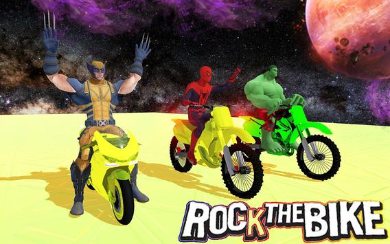 Set over a galaxy space side view, this neon tron bike crazybikerider game is full of sky skaters, high mid-air mega ramps and stunt zone burning loops. This colorful galaxy space GT bike racing game 2018 has your favorite action superheroes and it gives you a lifetime opportunity to drive reckless payback wildest high speed colorful heavy bikes cycle with superhero bike riders. Now who would say no to this ultimate impossible xtreme superhero space motocross bike riding chase with spider boy, super boy, elf, giant green hallk, super energetic wolverine and lightning fast super woman? Drive like a super crazy bike stuntman on the endless hi-speed galaxy space air tracks? who does not enjoy bike GT drift racing full of flips, mid-air drifts and high jumps in a BMX bike ride over the 3D sporty realistic environment of this impossible xtreme racing fever monster space trial dirt bike oval deathwell stunt riding mania?