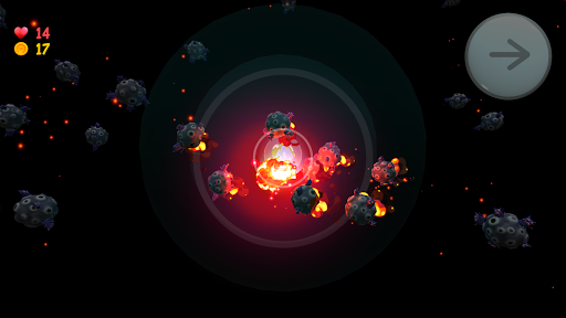 A game in the style of cosmic retro-futurism with expressive animated characters, malevolent laughing enemy, stunning 3D explosions, shots and game store with original skins and much more.