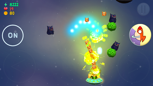 Fearlessly make your way to the dimension of black cats to get in a space battle with bosses and repel their increasing attacks! Shoot back at kamikaze cats.