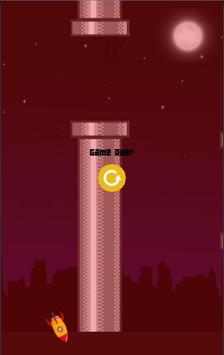The game displays a virtual arcade environment where the player uses a tap on his screen to play the game. The game is well suited to play in the dark giving a realistic show of the rocket flying across the city and between the pipes.