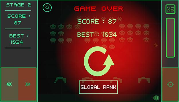 * 6 different classic retro alien invaders to wipe out
