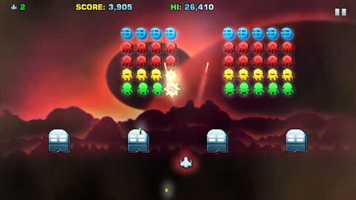 Arcade mode features fast paced action with regenerating aliens and power-ups to even the odds. There’s also a Classic mode is also available for those wanting a slower paced more traditional game.