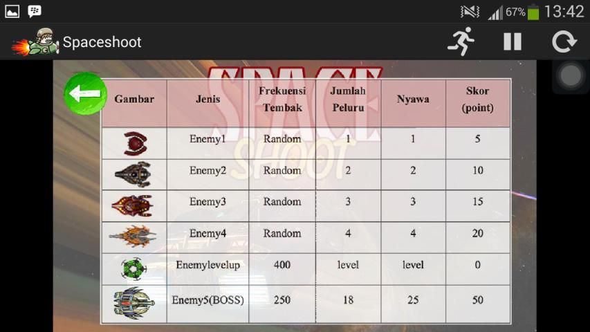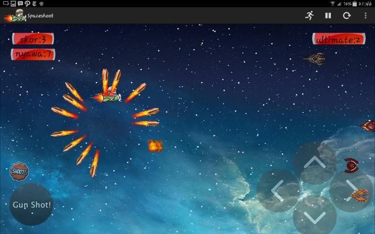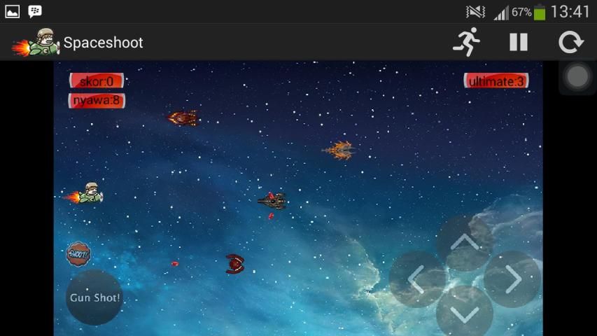 Game ini melatih ketangkasan dalam menghindari musuh(enemy) yang geraknya tidak beraturan, game Space Shoot ini bisa dibilang game sederhana. Game ini dimainkan oleh satu orang pemain dengan mengendalikan kontrol dari pesawat ruang angkasa dan akan menyerang satu sama laisn (menyerang enemy yang datang). Game Space Shoot ini dibuat untuk bisa dimainkan di android.