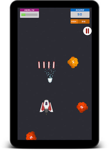 Space Shooter is an arcade game where the spaceship has to destroy all the asteroid coming on its way. Save your spaceship health by destroying the asteroids. Dodge or destroy asteroid to save your spaceship health. The game will get more challenging and exciting as you score high. You will the smooth movement of your spaceship anywhere on your screen with a single finger touch.