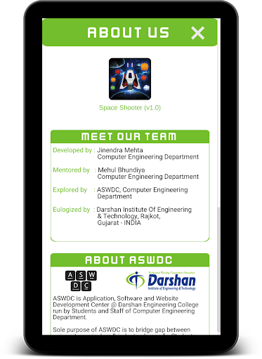 This Game is developed at ASWDC by Jinendra Mehta (160540107087), 6th-semester CE Student. ASWDC is Apps, Software, and Website Development Center @ Darshan Institute of Engineering & Technology, Rajkot run by Students & Staff of Computer Engineering Department