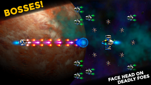 Shoot and evade to survive - unlock a variety of weapons, upgrade them and use them throughout your missions. Use your skills to fly your spaceship through deadly enemy territory, defeat as many enemies as possible and evade their attacks.