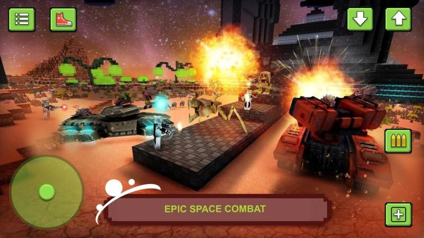 Alien zombie shooting games in a sci-fi craft setting. Survival arena mode with leaderboards. Crafting & building of space tanks. Action shooter with sniper rifles, pixel guns and exploration of a sandbox world.