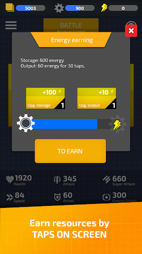 , you can use the clicker mode. Firstly you need to earn energy, then use it to get other resources. But some of them can be earned only in battle. Even when you are offline, game currency earnings do not stop!