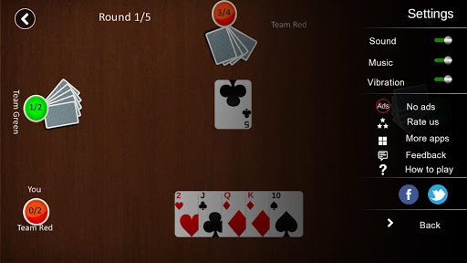 This is 4-player trick-taking game where user has to bid whist from 13 cards. In spade gameplay, all four players bid a number of tricks. Each team adds together the bids of the two partners, and the total is the number of tricks that team must try to win in order to get a positive score. The bidding begins with the player to dealer's left and continues clockwise around the table. Plan and strategize move to compete and win the game. Gameplay match with bridge card and is a descendant of the Whist family.