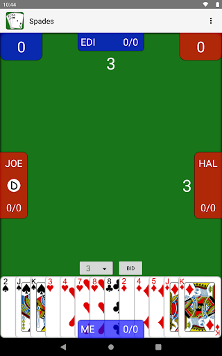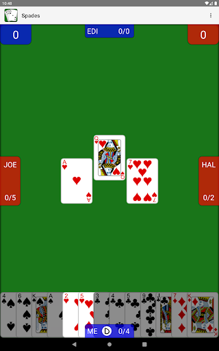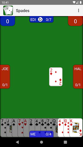 - Single player Spades against three AI players with changeable difficulty settings