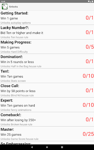 - Unique "House Rules" options: Game Score, Blind Nil, Broken, Ten, Half in the Bag