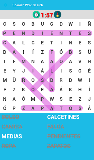 Look at the wordsearch puzzle and swipe the letters with your finger to find the hidden words.