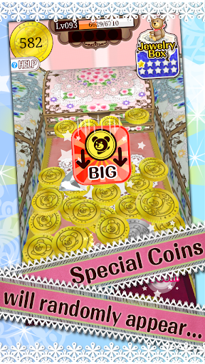 "Sparkle Drop!" is a free and simple coin dozer game.