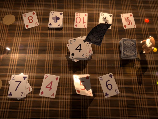 Suits or colors don’t matter, only the value on the card counts. Cards of the same value have to be stacked onto each other. It doesn’t matter whether you stack the card onto your own stack or the stack of the opponent.