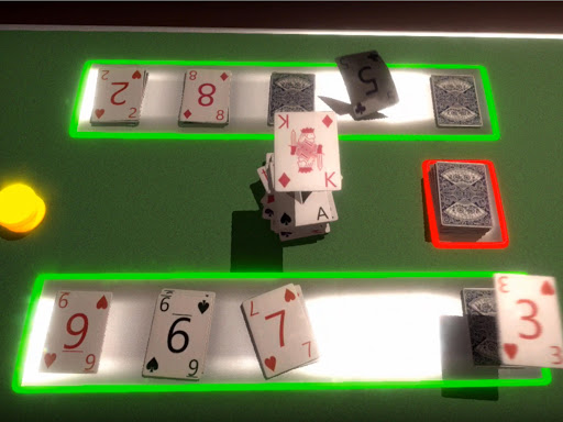 A green or red colored indicator determines whether a player can make a move or not. If no player can make a move, the indicator by the middle stack turns green, which means that a card from this stack can be flipped by touching it.