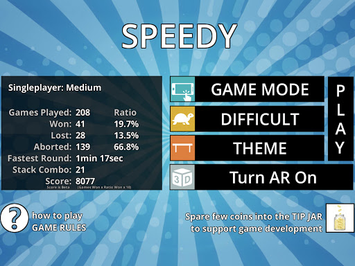 Whether you play against a friend (on the same device), or against the computer: It’s easy to learn and quick to play.