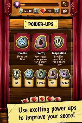 Connect letters to clear tiles! Make longer words for special bonus tiles or use any of five exciting power ups to scramble through more words and top your friends on the score ladders!
