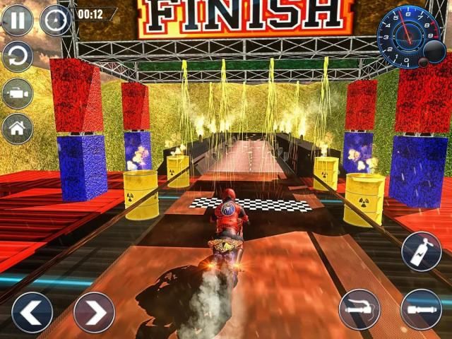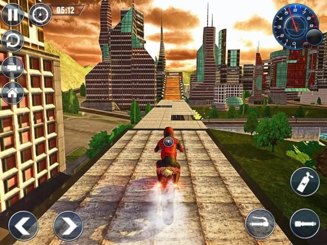 Spider Hero Bike Stunts Trick Master Game brings you loads of bike riding thrilling action and extremely adventurous thrill. This extreme racing game of fast speed will bring you many stunts challenge of bike driving. Enjoy the motorbike stunt racing game adventure in in this insane stunt riding simulating game. Finish the extreme bike riding circuits full of challenging obstacles by performing dangerous stunts, crazy jumps and bike riding tricks. Get ready for the different type of hurdles and crazy obstacles. Accelerate and ride your bike fast to make extremely high jumps from ramps in this simulation stunt game. There is no room for any mistake or knock down. Your spider hero will fall in the water if the stunt jump will not be high long enough. Jump above many trucks on your stunt motorcross bike by handling your bike with control and firm grip. Advance to the next levels of more challenging and dangerous stunts performances. Gear up for the helicopter jump challenge in which you will have to ride your bike extremely fast to jump over many helicopters and finish the race. Download Spider Hero Bike Stunts Trick Master Game to experience the thrill of bike stunt adventure.