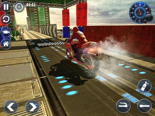 Welcome to the racing action stunt arena for ultimate fun and adventure in this daring jump stunt game name Spider Hero Bike Stunts Trick Master. Be a Spider Hero stunt bike racer and perform extremely challenging and dangerous stunts on your sports bike in the stadium of impossible tracks with extreme hindrances and obstacles and be the spider hero bike racing champion. Become a daredevil champ and hero of motorcycle driving tricks by entertaining the arena full of crowd with your super eye catching stunts in this epic entertaining simulation game. The crazy paths of stunting game hurdles of highway will get more tough and challenging as you advance to the next level. Keep your stunt bike in control of your spider hero rider and dodge out all sorts of extreme obstacles on curvy tracks by performing amazing tricks to be the motorbike stunt master driver of bike stunt games in this epic stunt arena time trial racing game of spider bike. Enjoy the fast paced gameplay in this epic bike game with spider bike race challenge. Avoid getting smash & crash to survive in this two-wheel simulator stuntman spider games. Join the crazy fantasy of the best spider bike racing games. With the amazing high quality 3D graphics and cool game features & easy controls, enjoy being a spider hero stunt rider in this ultimate Spider Hero Bike Stunts Trick Master Game.