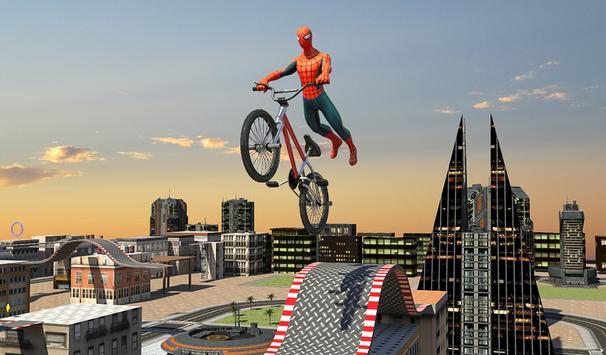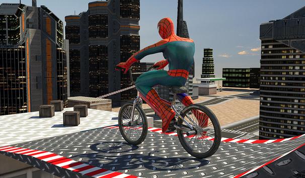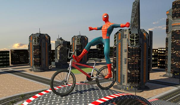 Perform some serious crazy stunts in this spider hero motorBicycle stunt game and race to the finish line really fast! As a real stunt spider hero ride a bicycle on crazy wheels to Perform stunts on ramps and complete all bicycle missions. While performing crazy jumps on rooftops of dangerous building avoid the obstacles and achieve your parking mission.