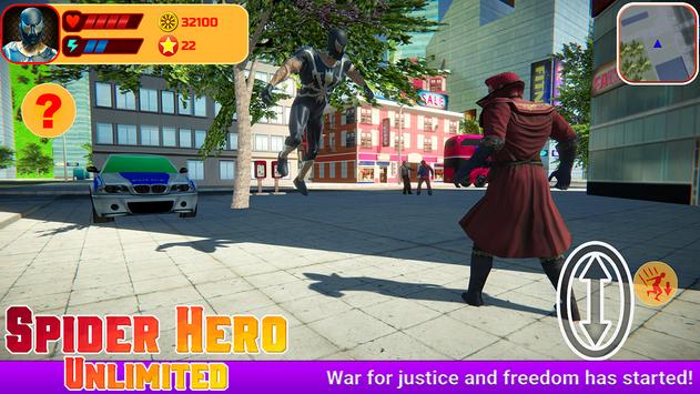 Spider Hero Unlimited - come face to face with the mightiest villain of superheroes Universe. Fighting crime is not the easiest way and not every man in the world can handle it. But you are the chosen one who are able to carry out this mission. Enter this amazing world full of superheroes contests and unlimited power in your hands!