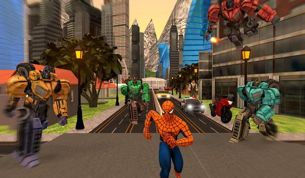 Your Spider Hero has a special power for destruction the enemies. You will be able to protect civilians and save the city with the help of your fantastic fighting skills and strategy. You may Crush and smash everything on your way and become a super Spider Hero of City war. Spider Hero saves the people and city from the evil Transformer Robot enemies and become a champion for justice.
