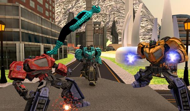 Be a Spider Hero in City War to fight as Transform Fiction Super Hero – If your city had been attacked by criminal and evil robots then what should you do? Get ready for the war against criminals and evil robot fighter and become a hero and savior of a city. You can play as a Spider Hero with amazing power skills where Spider as a character of super Hero fights and catch the evil and Transform Robots.