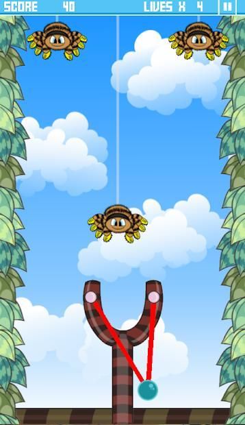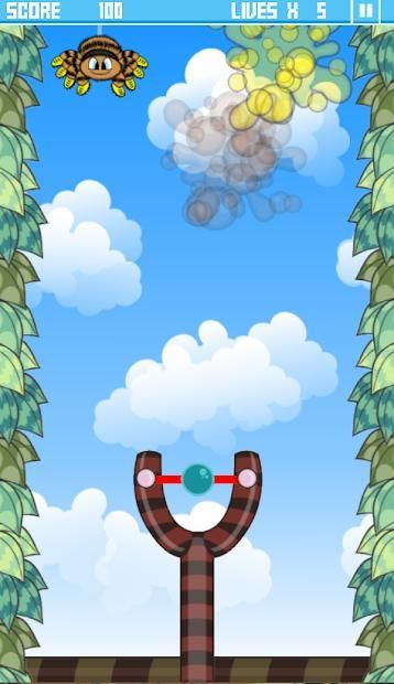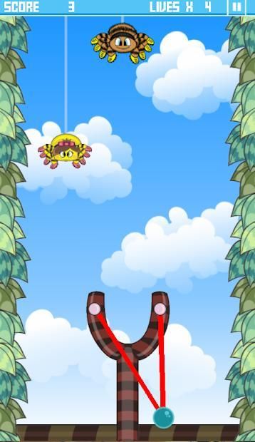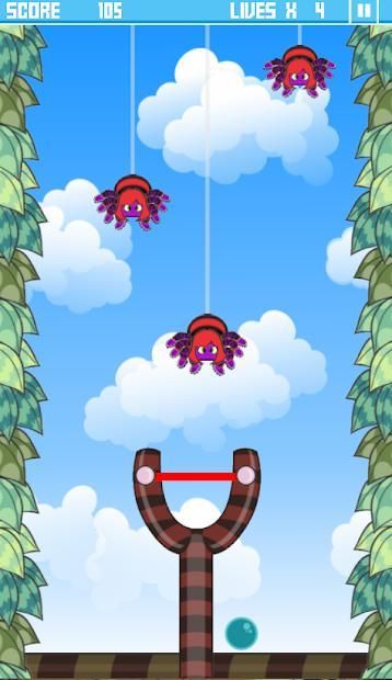 A spider invasion is happening and you must use the slingshot to burst as much as possible before they reach down.