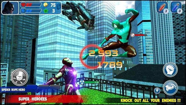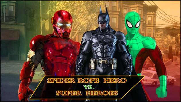 spider rope hero stopped the heroes games and all the spider hero game fighters start saving innocent civilians. The victor spider hero come into war against the multi spider and kung fu monsters. champion hero just use his stunning power against the mythical creatures and criminals and superb attacks of spider games fighters become the cause of death to super villains. hero game were ended with joy and real fun.
