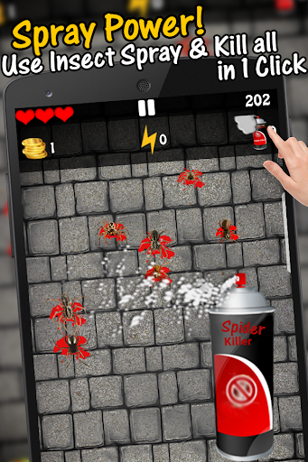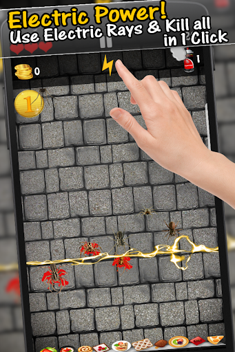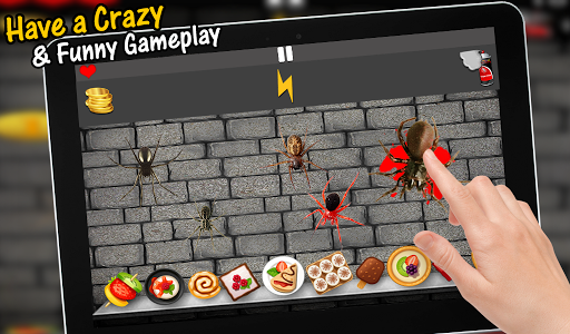 You can say it as hunting insects or shooting spider with finger game is a real adventure. Three great options are added for great fun, (i) life option is added so hit more spiders before they enter your kitchen area otherwise your one life is gone. (ii) Spray option is added, if there are so many spiders that you can kill by finger hit spray button to kill all spider instantly. You can purchase spray with coins that you have collected. (iii) Electric wave to kill all spiders on the screen, you can also purchase electric wave with coins you have collected.