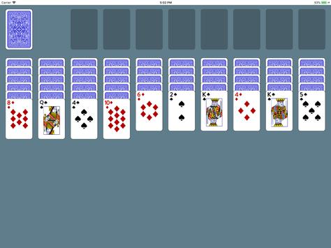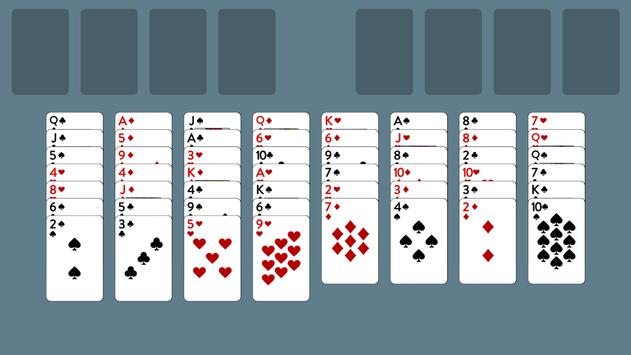 The main purpose of the game is to remove all cards from the table, assembling them in the tableau before removing them. Initially, 54 cards are dealt to the tableau in ten piles, face down except for the top cards. The tableau piles build down by rank, and in-suit sequences can be moved together. The 50 remaining cards can be dealt to the tableau ten at a time when none of the piles are empty.