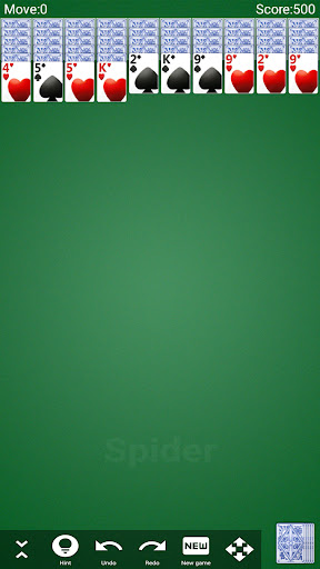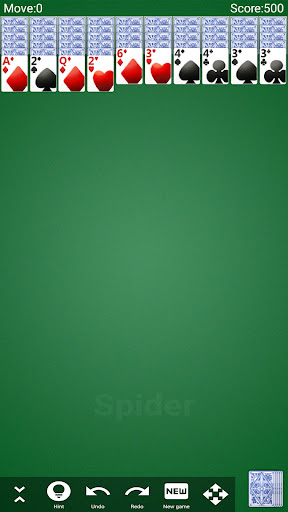 Spider Solitaire is played with two decks of cards. Depending on the difficulty level, the decks consist of either one, two, or four different suits.