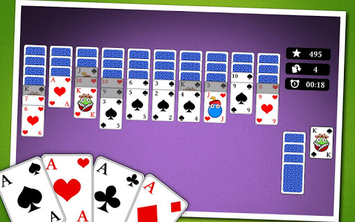 The goal of Spider Solitaire 2 remains the same which is to remove all cards from the table, assembling them in the tableau by color, from Ace to King.