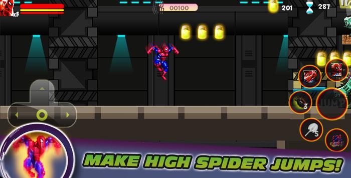 Spider natural side scroller gameplay with simple amusement reassure cushion fight with controls.