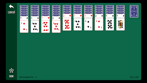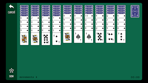 When no column is empty, when desired or if we can no longer make any movement, then add a row of cards visible from the heel, until the latter is used up (5 deals of 10 cards).