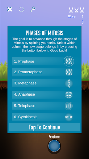 Split-a-cell is a game where players learn about the different steps in mitosis to better understand cell division. Players are taught about the order of cell division while playing a matching style game to build cells. While dividing cells, players are familiarized with the position of the chromosomes and how genetic information is moved within the dividing cell.