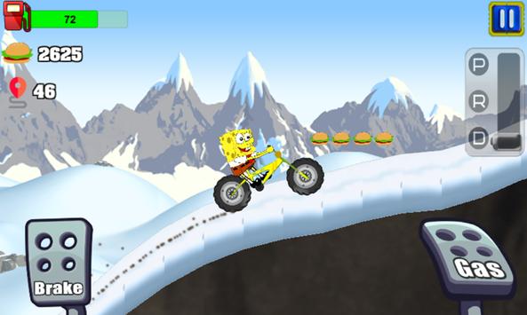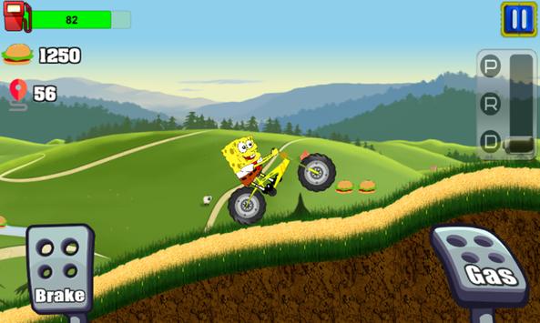when all bikini bottom residents are busy ruled by the evil plankton the sponge gets the mission from Mr. Krabby to look for magic shells to defeat the evil plankton, then Mr. Krabby gives a super bike from Kraby that can go very fast up and down and climb the mountain.