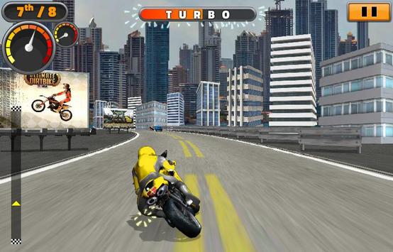Take the Sports Bike Challenge. Race your sports bike through multiple locations while using your bike turbo to overtake and try and beat the opposition motorbikes.