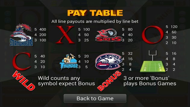 Welcome to the Sport Slots of American Football! Are you a football star? Are you a quarterback? Do you play in a fantasy league and score touchdown? If you like sports this game is for you! The Vegas slots craze has taken over! Win big bonus cash and play your way to a fabulous fortune in the fun, free new Sport Slots of American Football with bonus games. Be a hero or an all star by winning big on these Slots! Double your bet and beat the house with bonus games and prizes in our slots bonanza. Why journey to Las Vegas when we can bring the party to you?