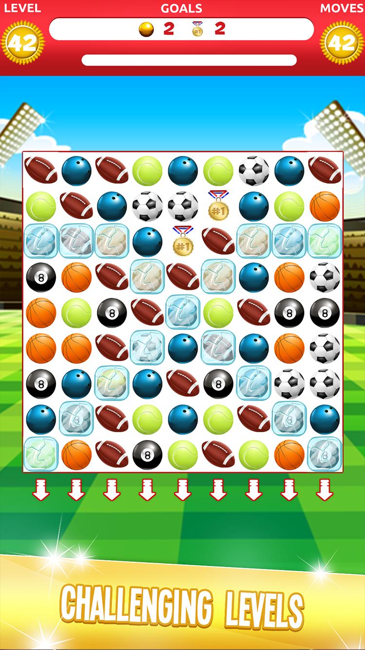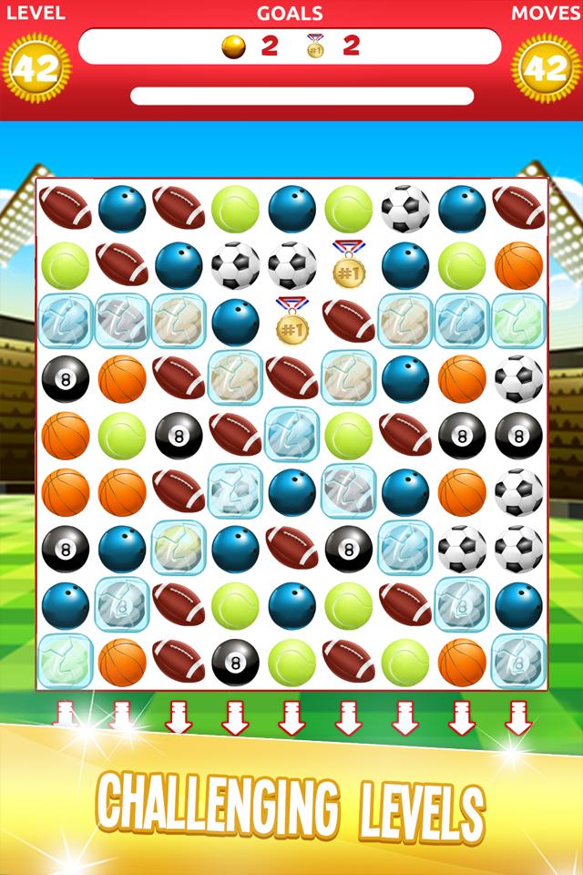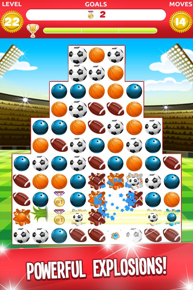 All you have to do is to swap the balls to make a chain of three or more of the same kind. Thanks to our easy to use intuitive controls, you’ll have no issues while you swipe your finger to perform your moves. Buy extra time for the rush modes trading your golden medals in our in-app store! We know that offering high quality graphics and sounds is important for all match3 lovers, that’s why we only bring you the best that you can find in casual games! Exciting stadium background music will cheer you up! Begin your adventure enjoying our diverse gameplay, and dive into the sports world! This match 3 puzzle is the bomb for all sports lovers!