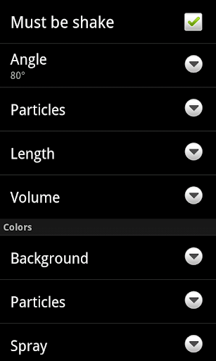 Spray Free brings a can of spray paint to your Android device. Shake your device and touch the screen to spray. Adjust the angle, the color of the spray, the cap color, and the number of particles. You can also customize the length and volume of the spray as well as the background color.