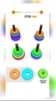 Move circles on top of towers. Two of the same value in the row would merge into one bigger. You can discard circles that You don't want. Reach the size of eleven to get a bonus! key Stack Merge Stack Merge 3D Stak Merge 3D