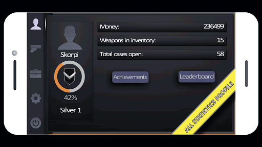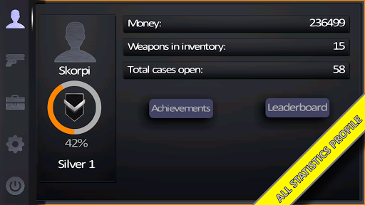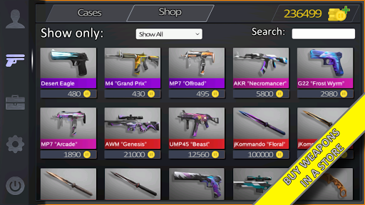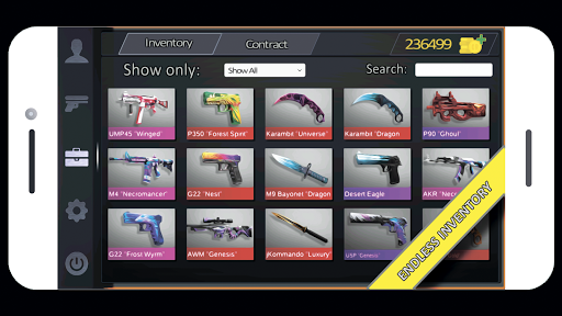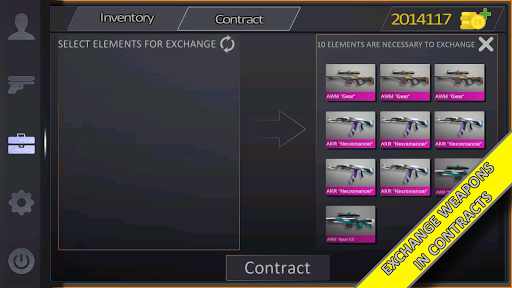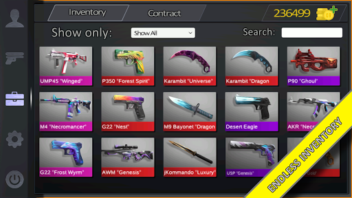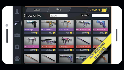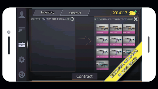 In the game you can open cases, buy and sell weapons, as well as sign a contract, exchanging old for new ones.