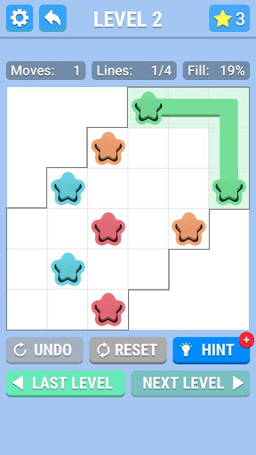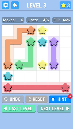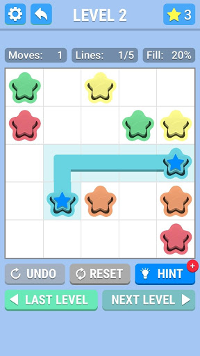 Star Connect is a free and challenging new classic fun line puzzle game with over hundreds of levels where the you must connect all the same colored stars by drawing a line through the grid. All stars must be connected and all spaces on the game board must be filled for the level to be complete.