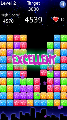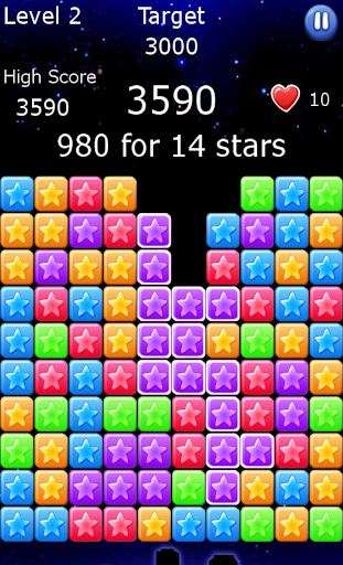 Tap on two or more adjacent stars to crush them, pop star with magic heart could crush single star, use it smart.