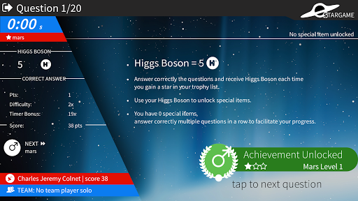Key features include “Divine Assets,” which are earned by answering chains of questions correctly, and which have a number of effects to help bump up the player’s score, including giving extra time, removing incorrect answers and more. Using Divine Assets unlocks trophies which then reward players with Higgs Boson, Stargame’s in-game currency, which can be spent to unlock even more Divine Assets. Colnet.ca will donate a portion of micro-payments to Canada Science and Technology Museums Corporation Foundation.