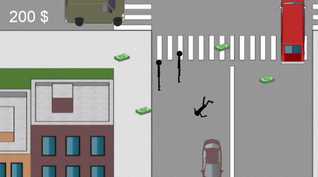 Control a little stick man through the wild traffic of this funny game and try to beat other stick people to the ground and steal their money.