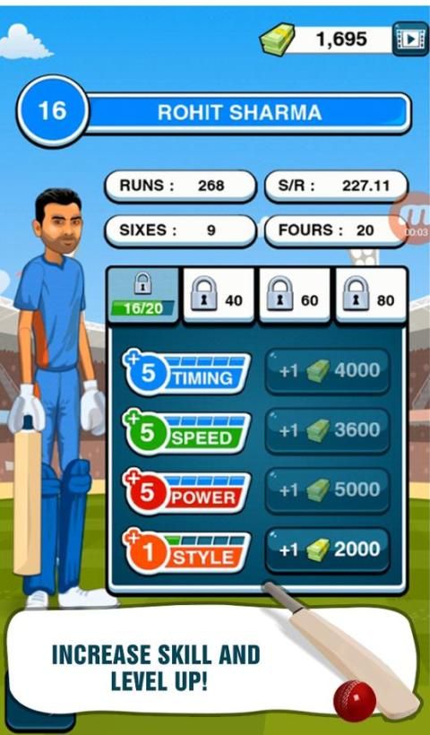 ● Enjoy an UNLIMITED number of levels, earning rewards to boost Virat and Rohit’s skills.