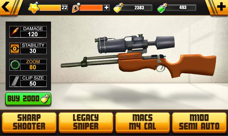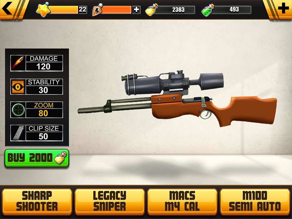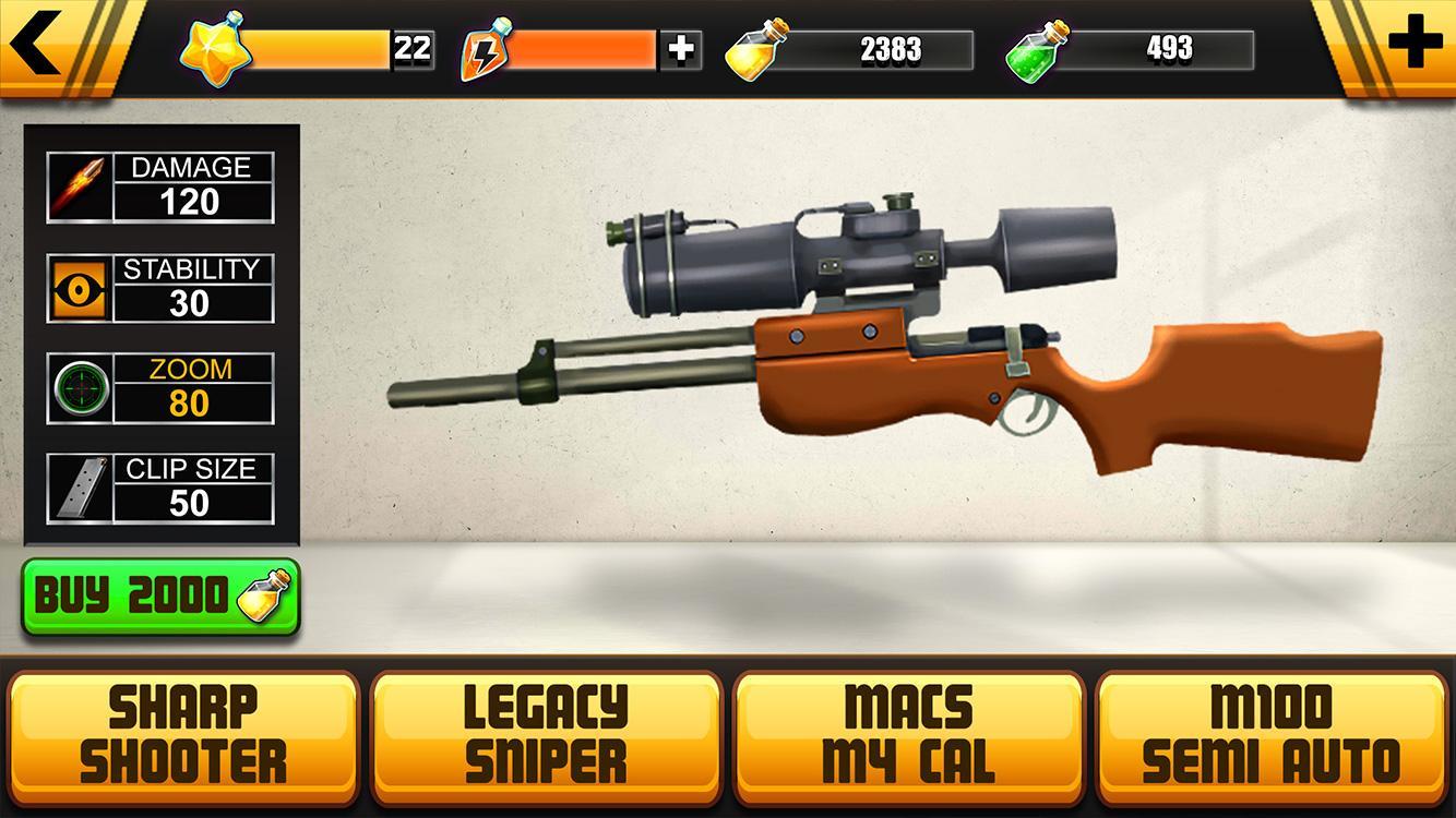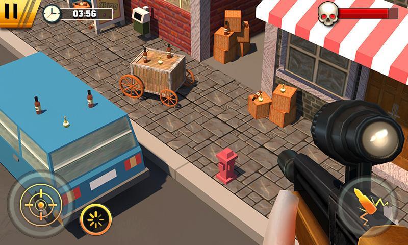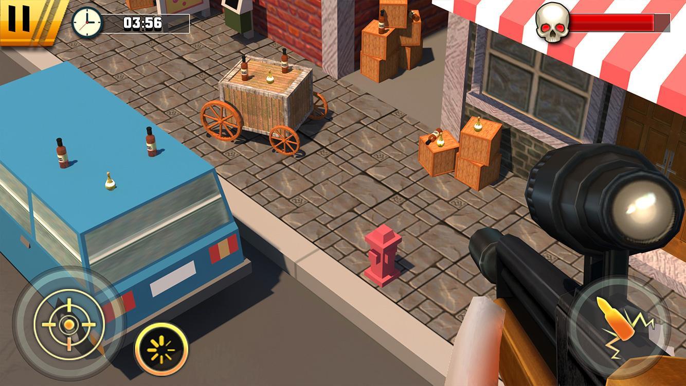 Destroy the wine bottle in stickman ’s hand while he is in your range. A stickman is balancing a wine bottle on its head to help you practice your aim. Destroy the bottle. Some stickman are showing stunts on the side path. Join the party and destroy the bottles. Buy your own different sniper rifle.