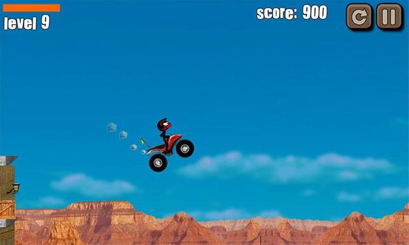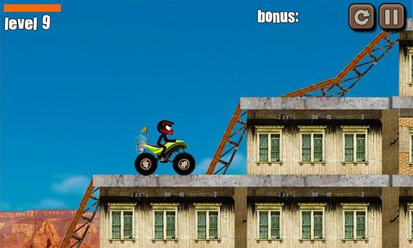 Take over the role of the superb stickman and perform stunning stunts on your motocross bike. Try to give the best show and make it to the finish. Earn much cash for upgrades and gain high scores, but beware of any crashes. Change your quad biketo complete each level.